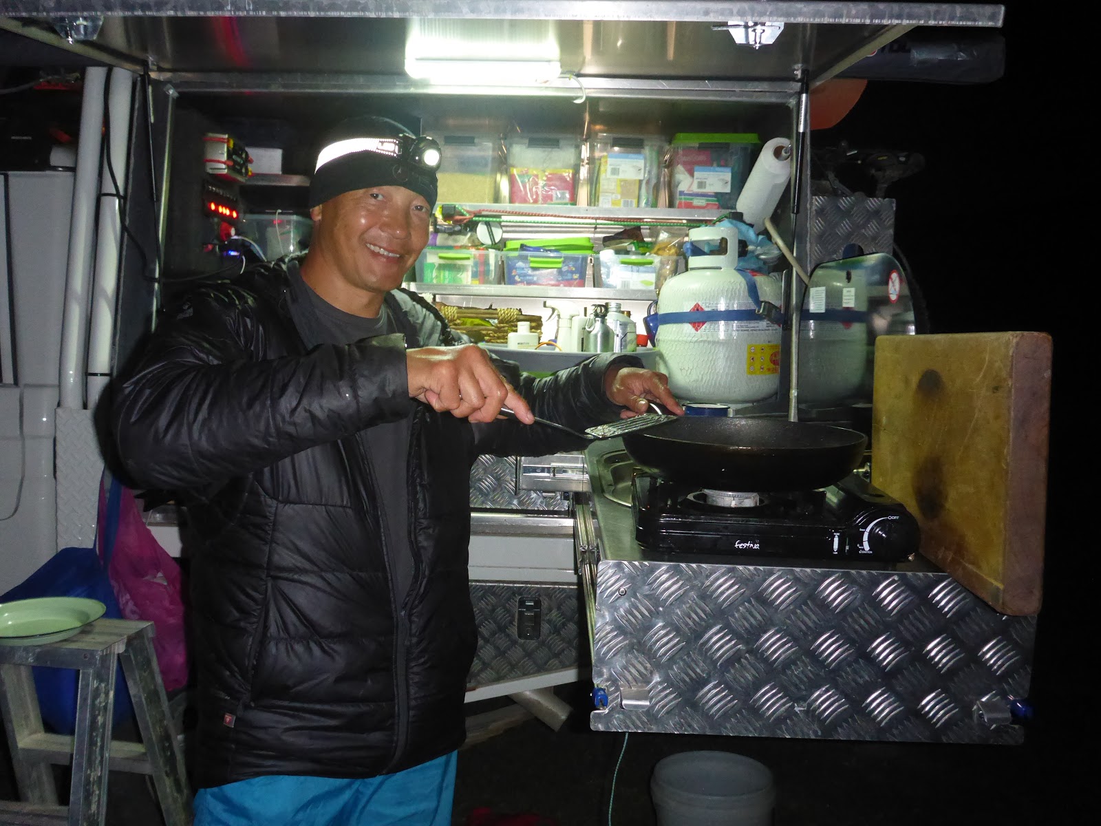 The 4WD owner returned with his kayak (yes, he got a kayak with him) with his catch. His name is Lawrence. He’s a Zimbabwean Chinese but had resided in NZ for more than 10 years. He invited me to have dinner with him. He grilled the freshly caught fish. It tasted so good. We chatted while eating and he told me that he sold his computer business and had been traveling around NZ for a year and a half. He also designed his 4WD compartments and did all the electrical things himself. When asked if he encountered any danger while kayaking to fish, he told me about his encounters with sharks and the danger of big waves which almost crashed his kayak.